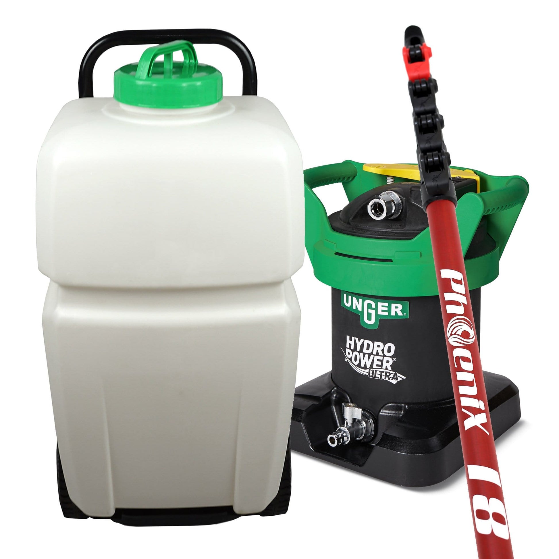 This starter kit is designed to give you everything you need to get start water fed Window Cleaning. Combining the portability of the BigBoy 2 backpack, and the powerful water purification of the Unger Hydropower Ultra, this kit is a great way to get yourself up and running.