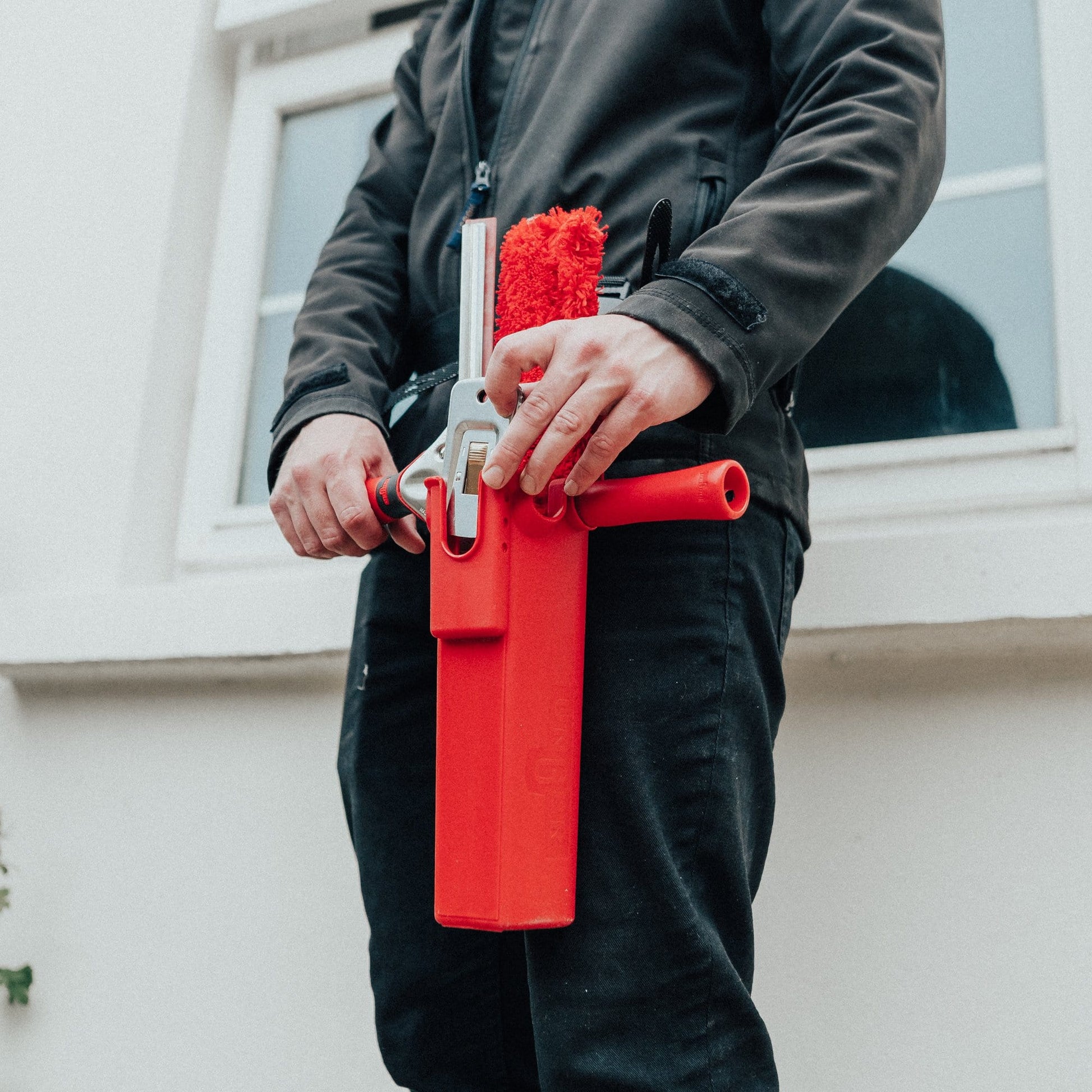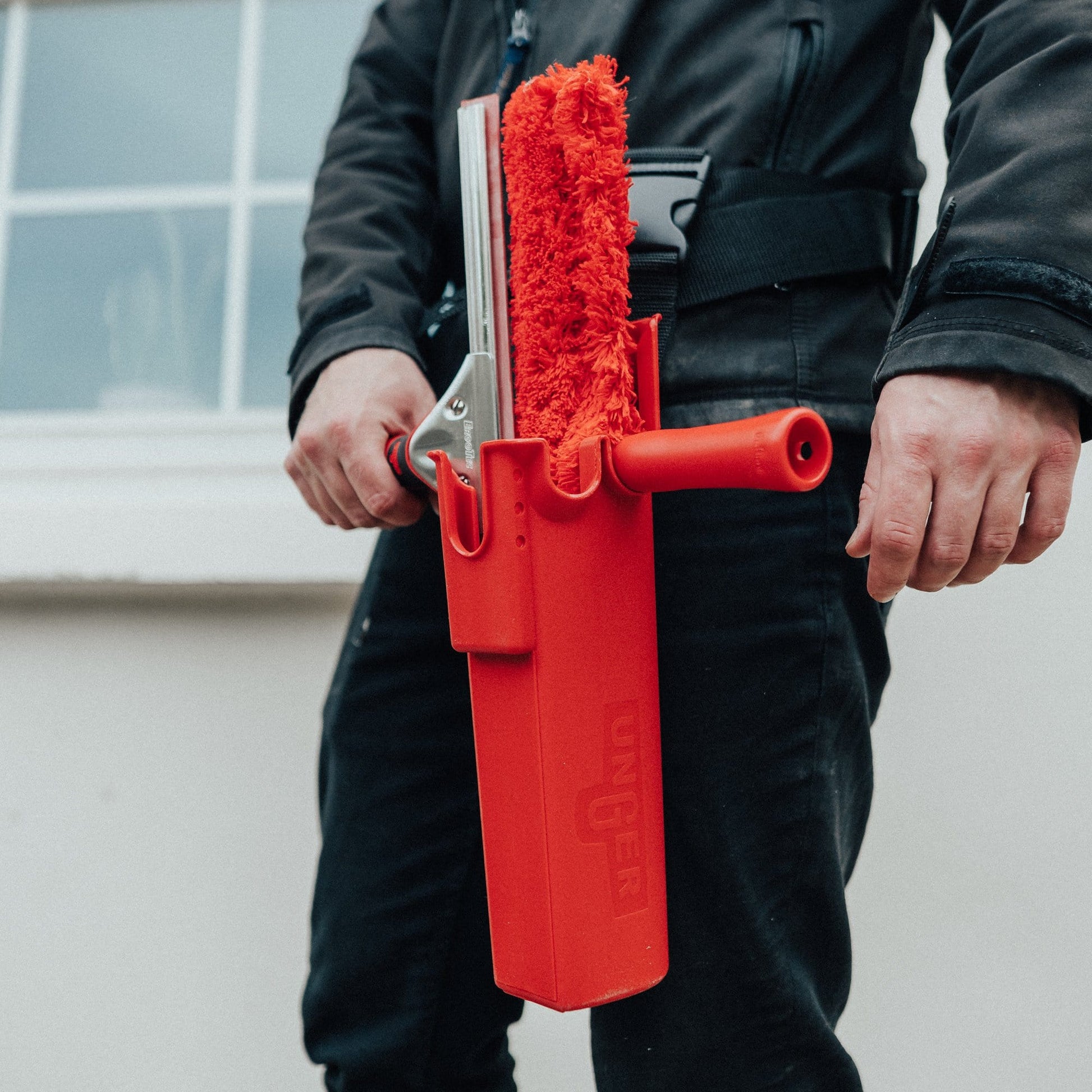 Holds one washer, two squeegees & a pocket scraper
