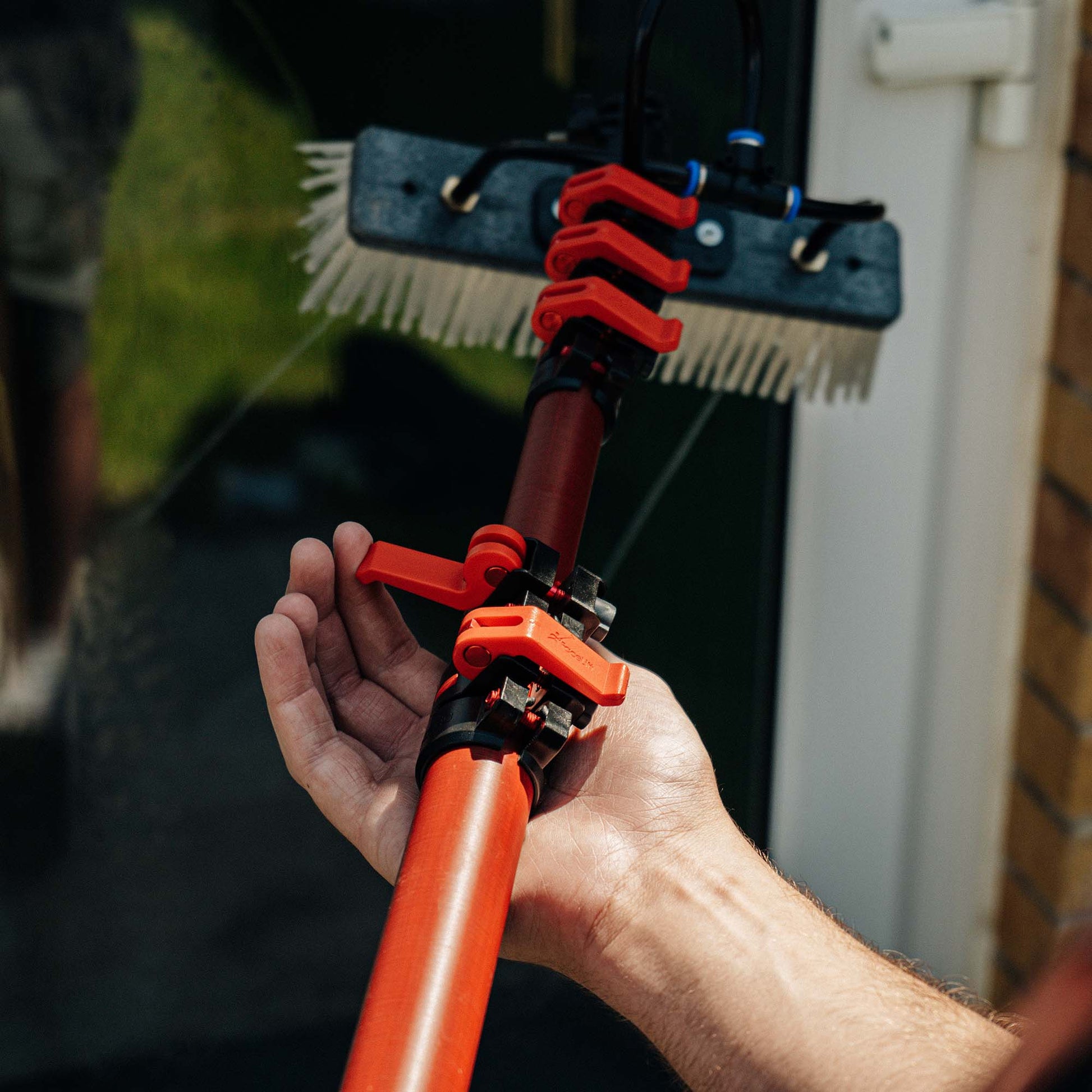 Part of the best-selling Phantom pole collection, this pole features carbon composite or 'hybrid' sections. The Hybrid version of the Phantom Pole includes some of the benefits of carbon fibre but without the total cost, making it a cost-effective water fed pole that is lightweight, robust and comfortable to use.