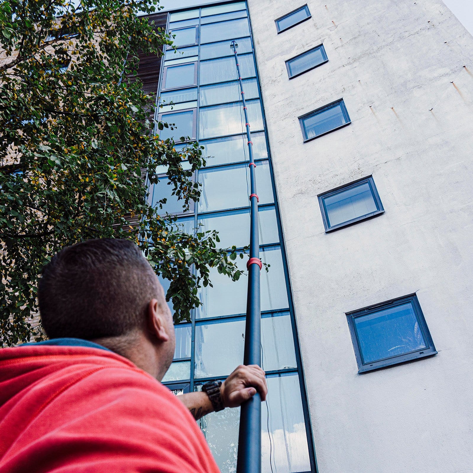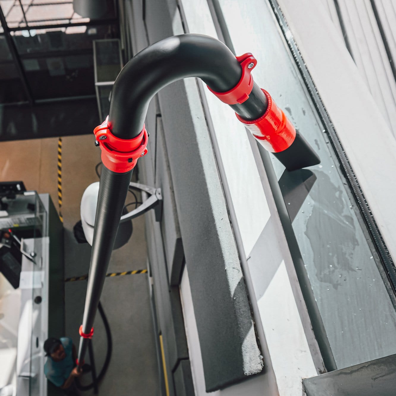 The Phantom Mod is the first system to reliably solve the problem of internal window cleaning at height, canopy cleaning, window cleaning and gutter cleaning at angles that have previously only been possible with access equipment - Saving costs, boosting profitability and allowing you access to services previously unavailable.