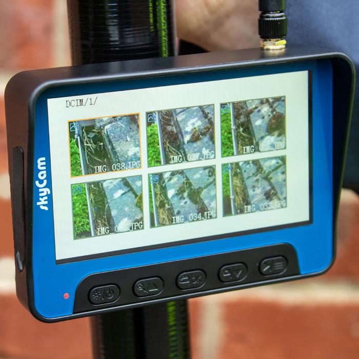 Cleaning at height often means cleaning with limited visibility. This camera system helps by providing a live feed from camera to monitor that can be recorded for later inspection.