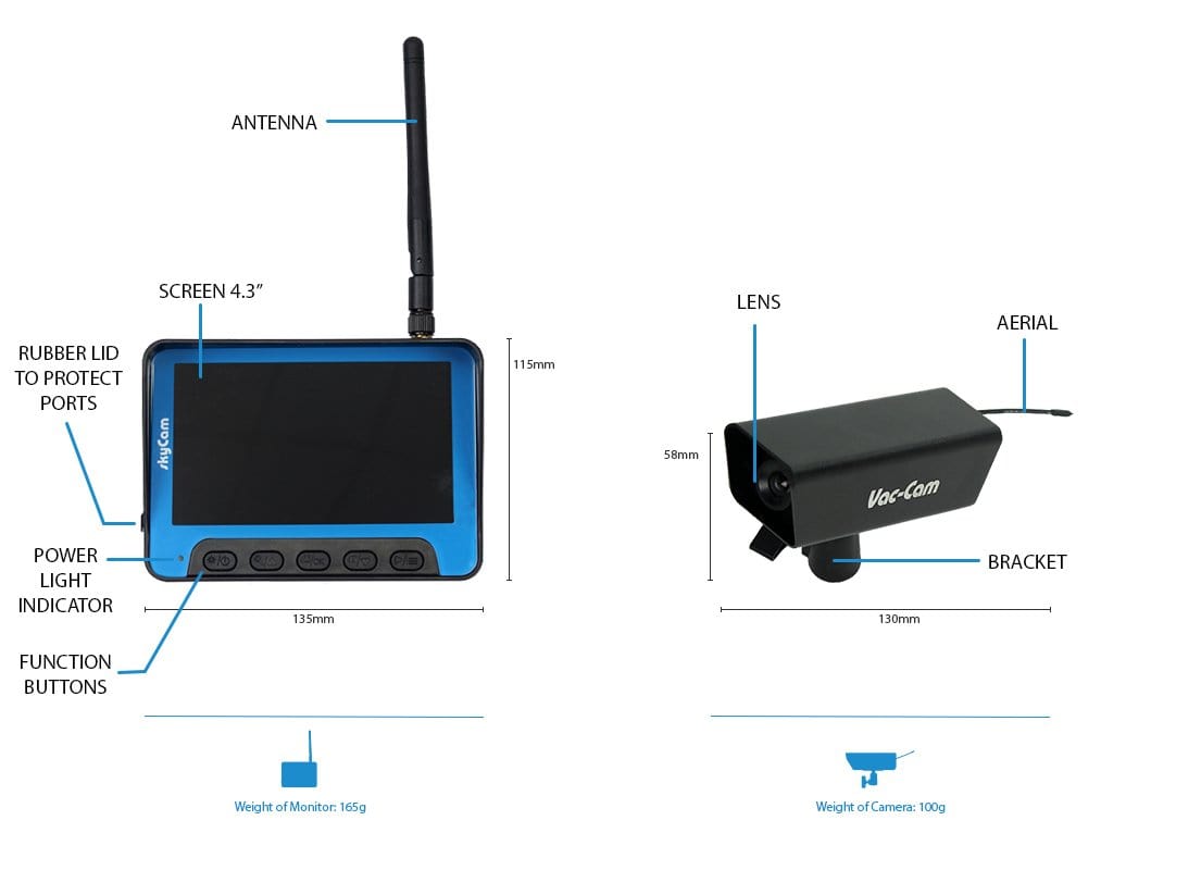 The GutterSucker™ Recordable Camera System includes a high-quality camera and robust monitor with built-in rechargeable batteries.