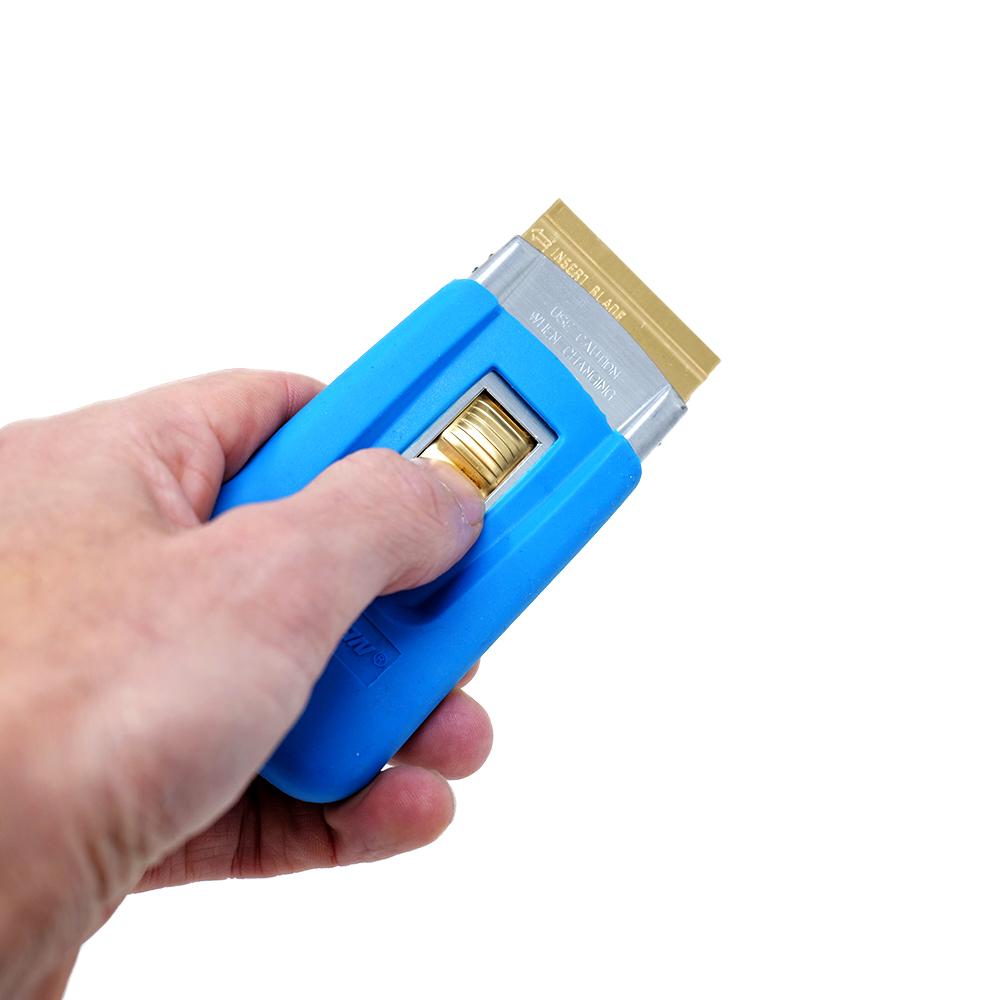 A convenient pocket scraper with high grip rubber sleeve. This useful pocket scraper fits a 1.5''/ 4cm blades, that can be quickly and easily replaced. The Moerman pocket scraper blade is retractable for safe storage