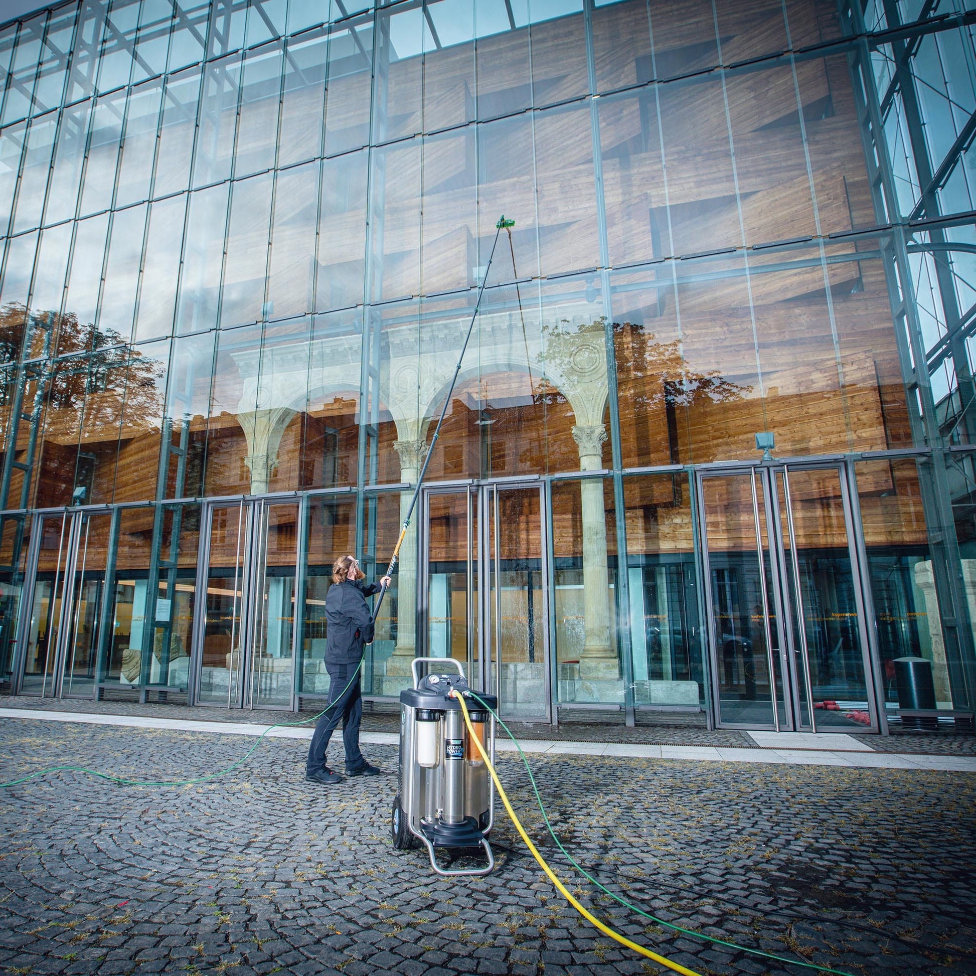 - Enlarges the work area, ideal for cleaning from boom lifts or gondolas