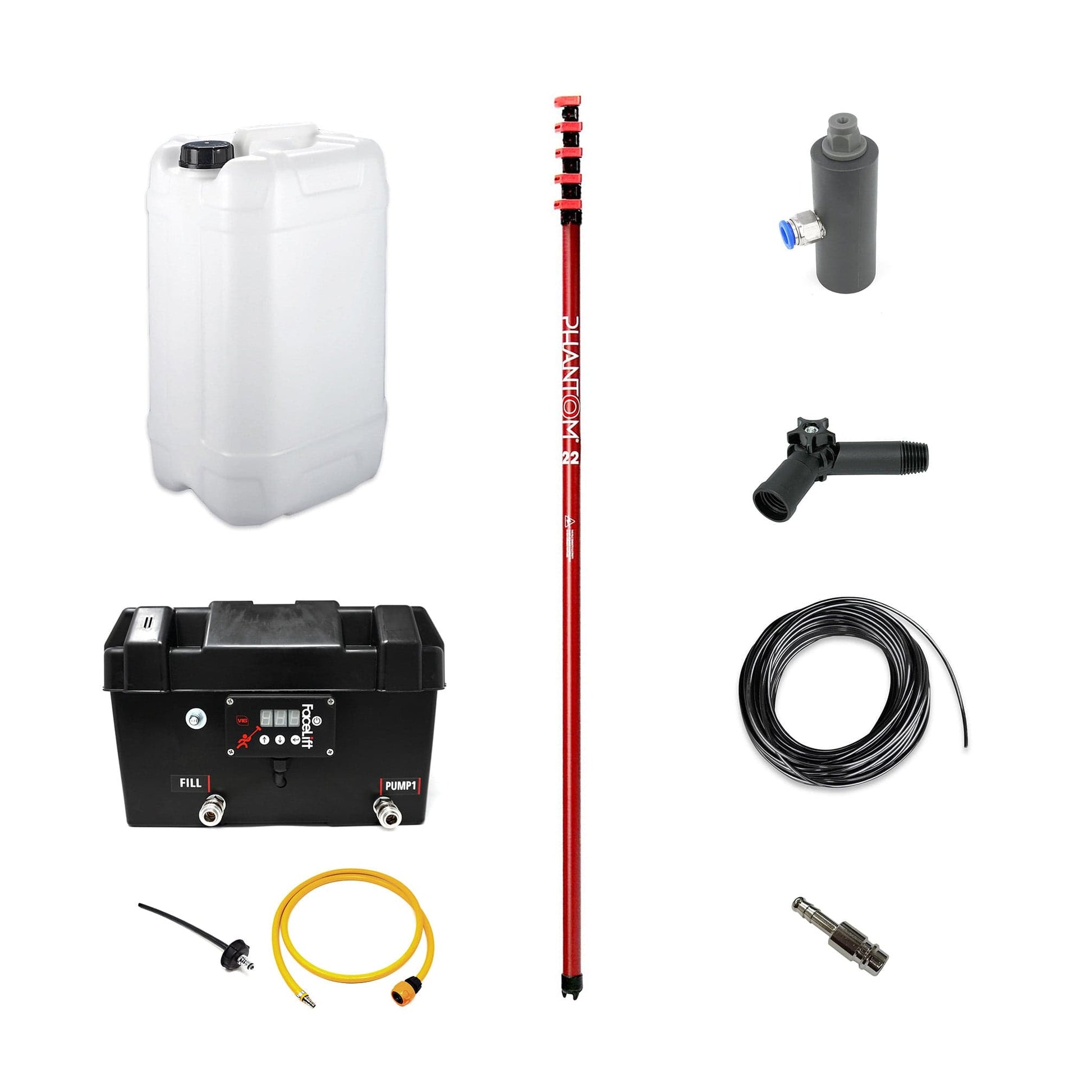 A complete portable solution for chemical application, including our Chemical pump box, Phantom Hybrid pole, chemical spraying nozzle, and necessary hoses and connectors.