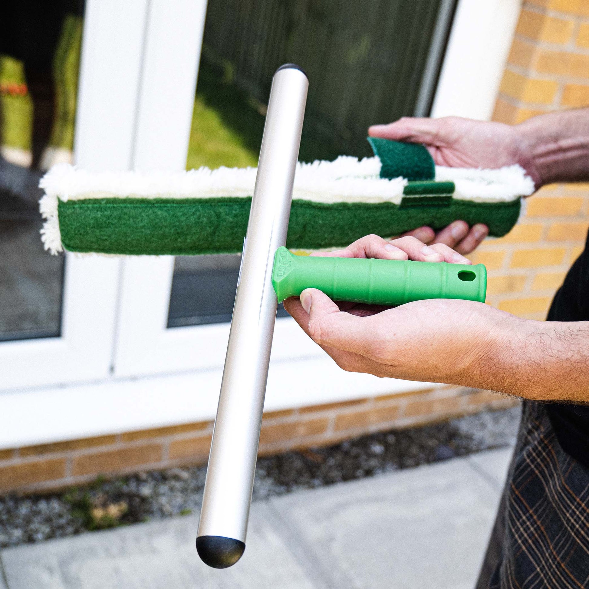 Lightweight Solid Aluminium T-Bar with Plastic Handle. Suitable for use with any Unger extension pole and fits any Unger washer sleeve.
