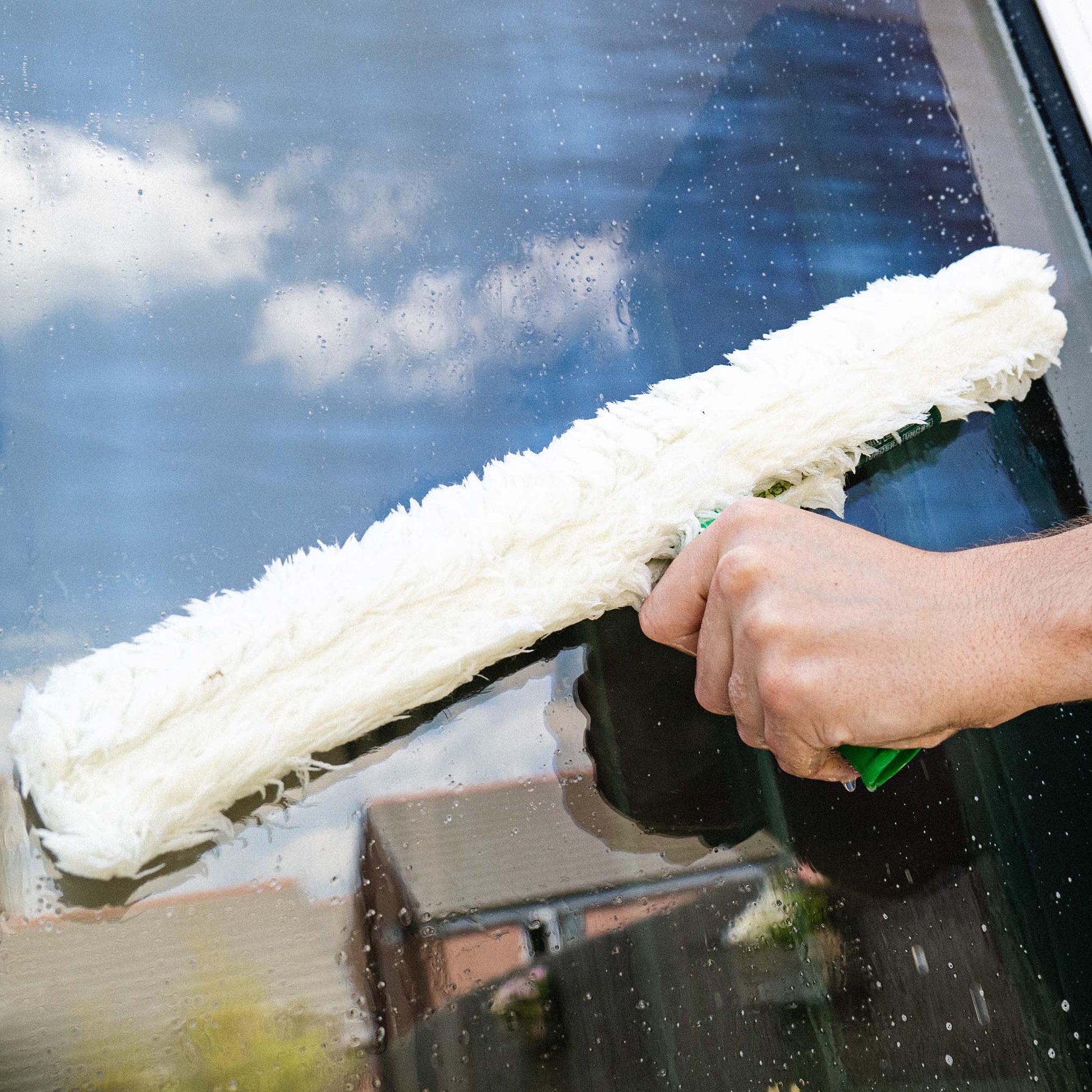 Classic white washer sleeve with absorbent blended fabric and a strong velcro fastener.