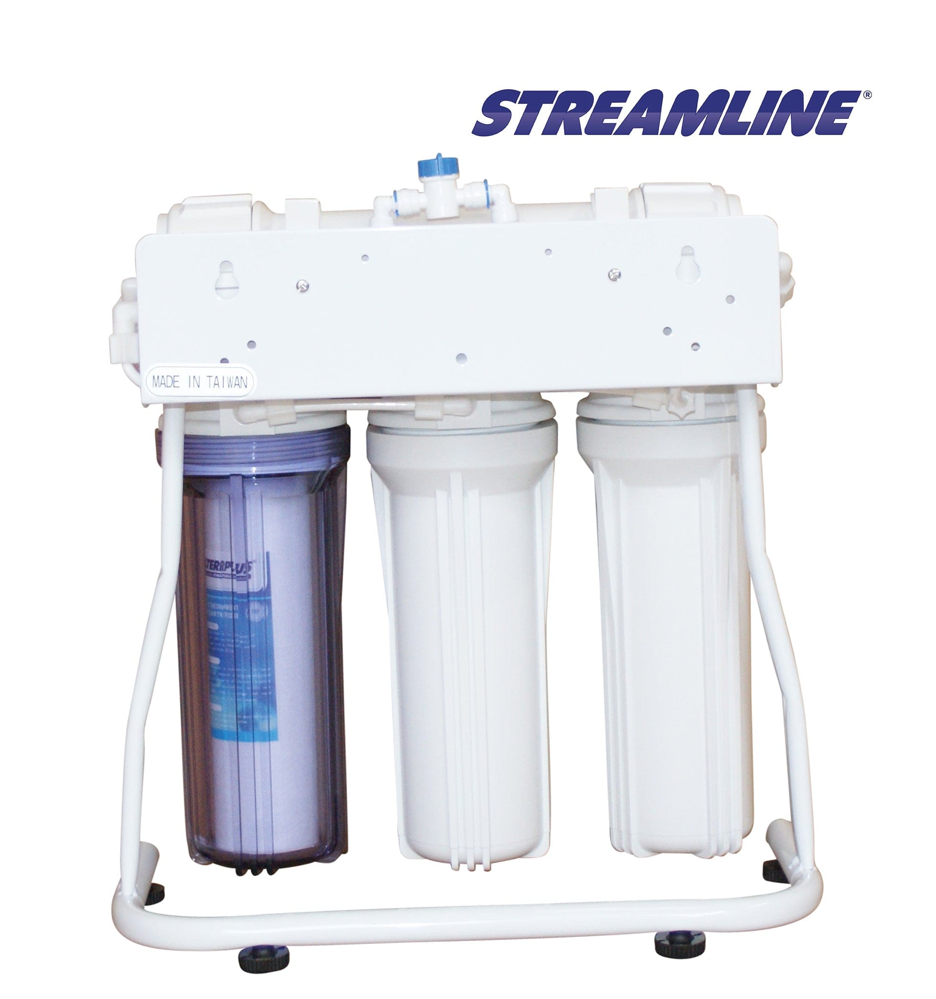 RO/DI filtration system capable of producing 300 or 600 Gallons per day (GPD, depending on model).